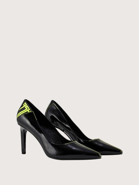 Giày cao gót nữ mũi nhọn phối logo