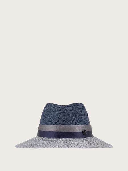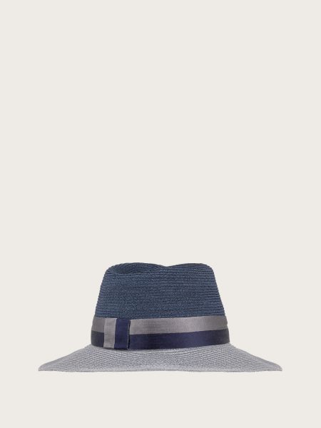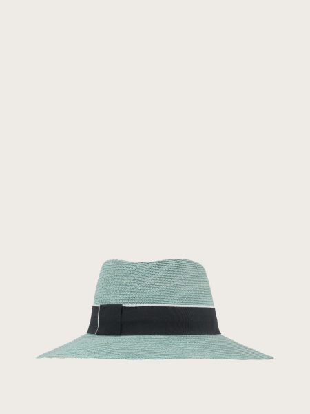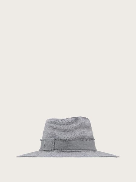 Nón fedora nữ vành cong phối đai dệt kim