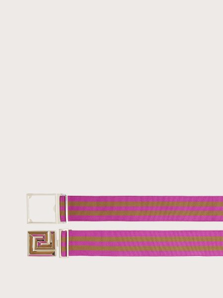 Thắt lưng nữ sọc ngang mặt khóa kim loại