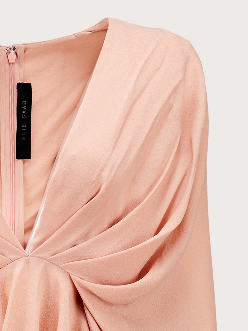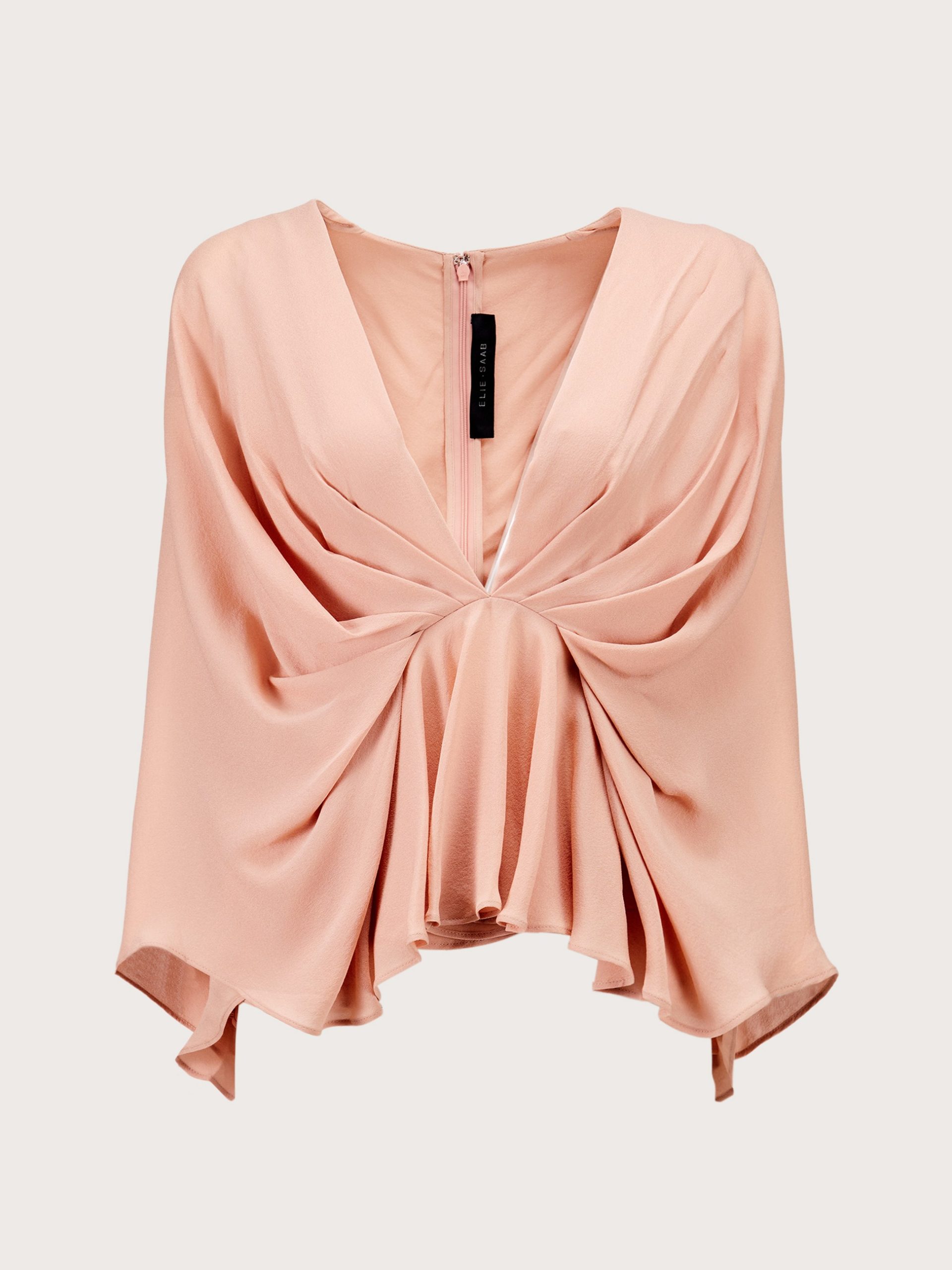 Thương hiệu: Elie SaabMã sản phẩm: 8604 – ID: 1044298Xuất xứ thương hiệu: LibanÁo kiểu cổ chữ V vạt xòe Tay áo cánh dơi, được thiết kế liền với thân áoXếp ly tinh tếKhóa zip sau lưng