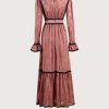 Thương hiệu: Three FloorMã sản phẩm: 1145 – ID: 1080731Xuất xứ thương hiệu: AnhĐầm dáng dài thanh lịchTay dài, cổ trònNhấn eo tôn dángViền màu tương phản