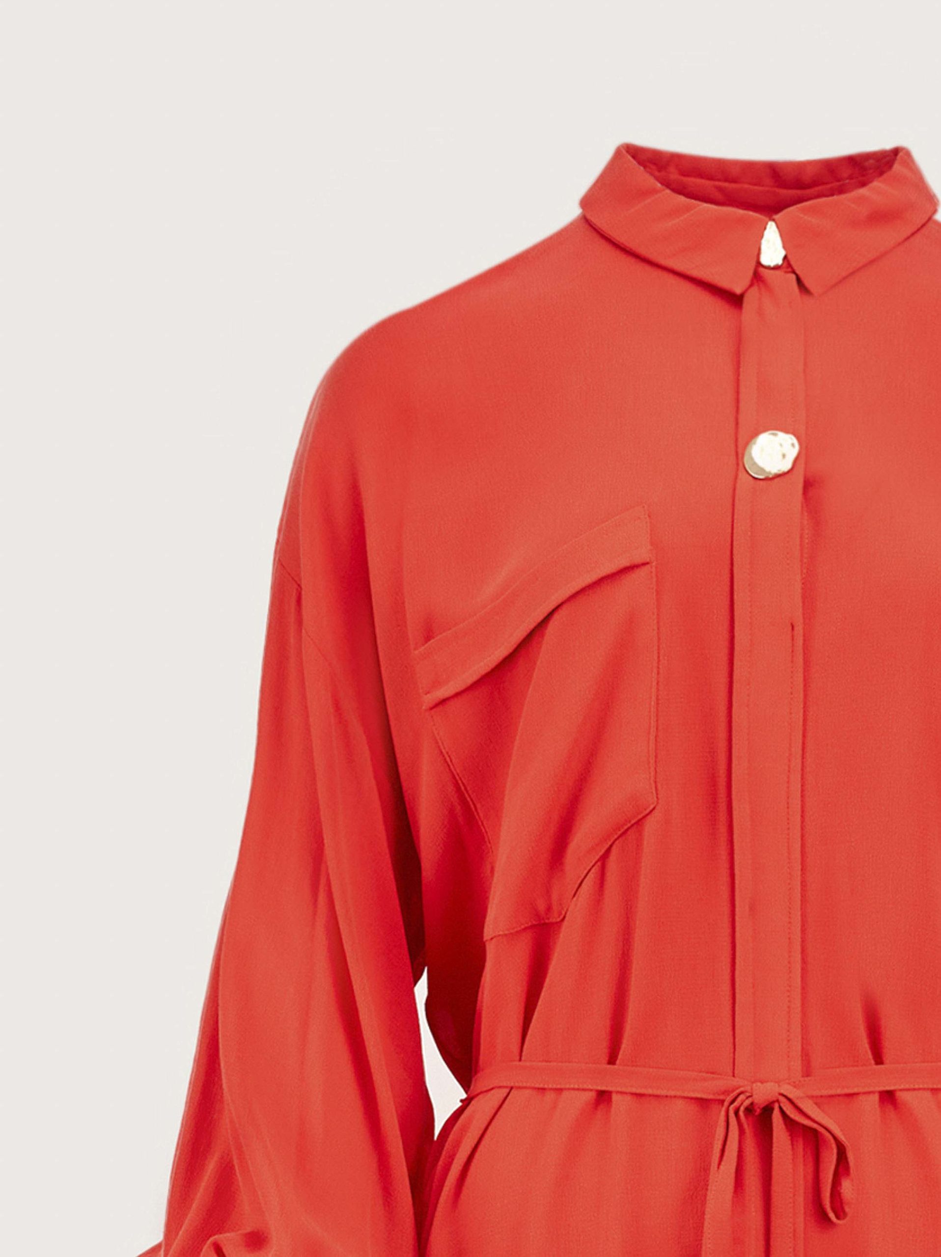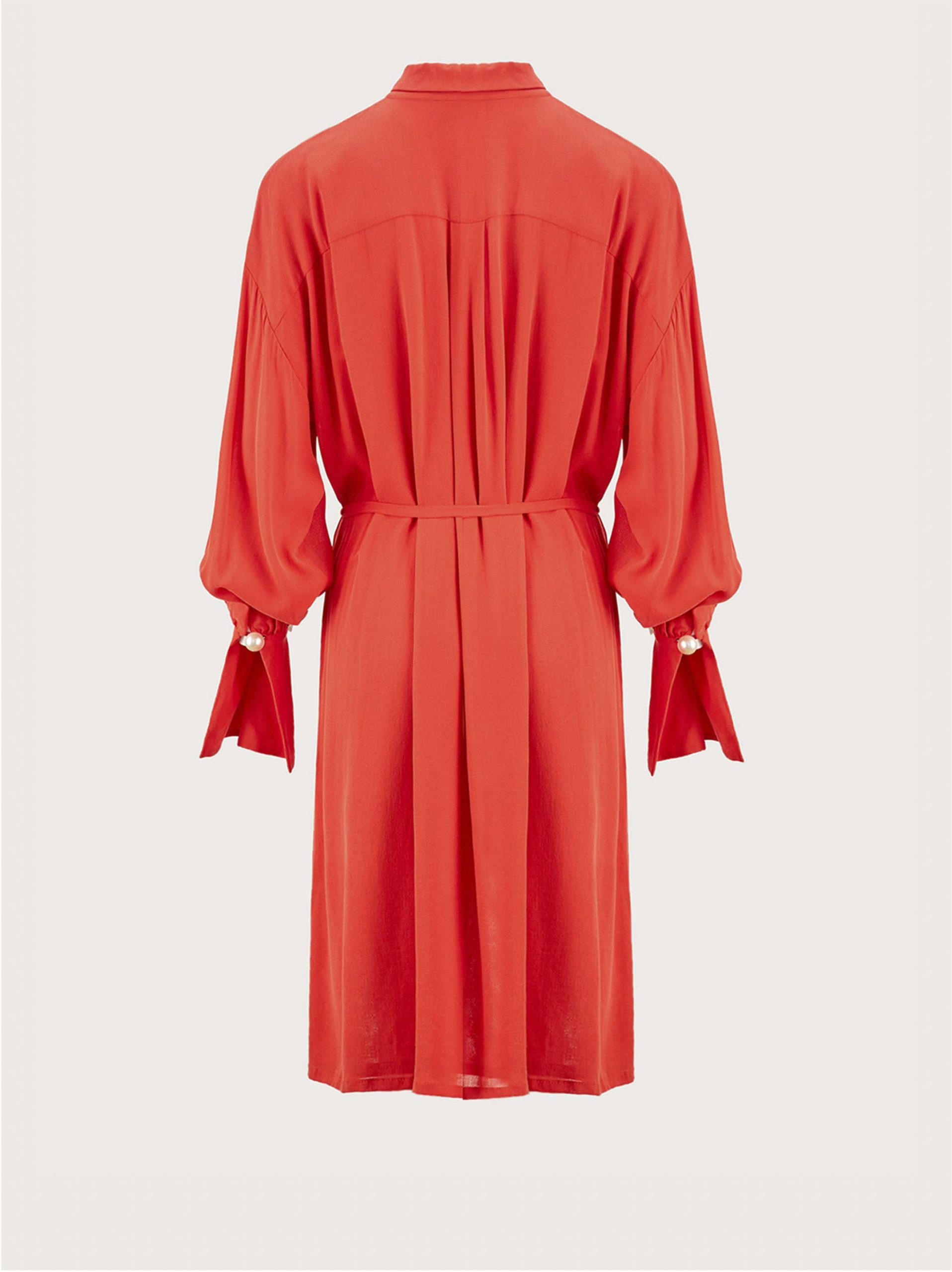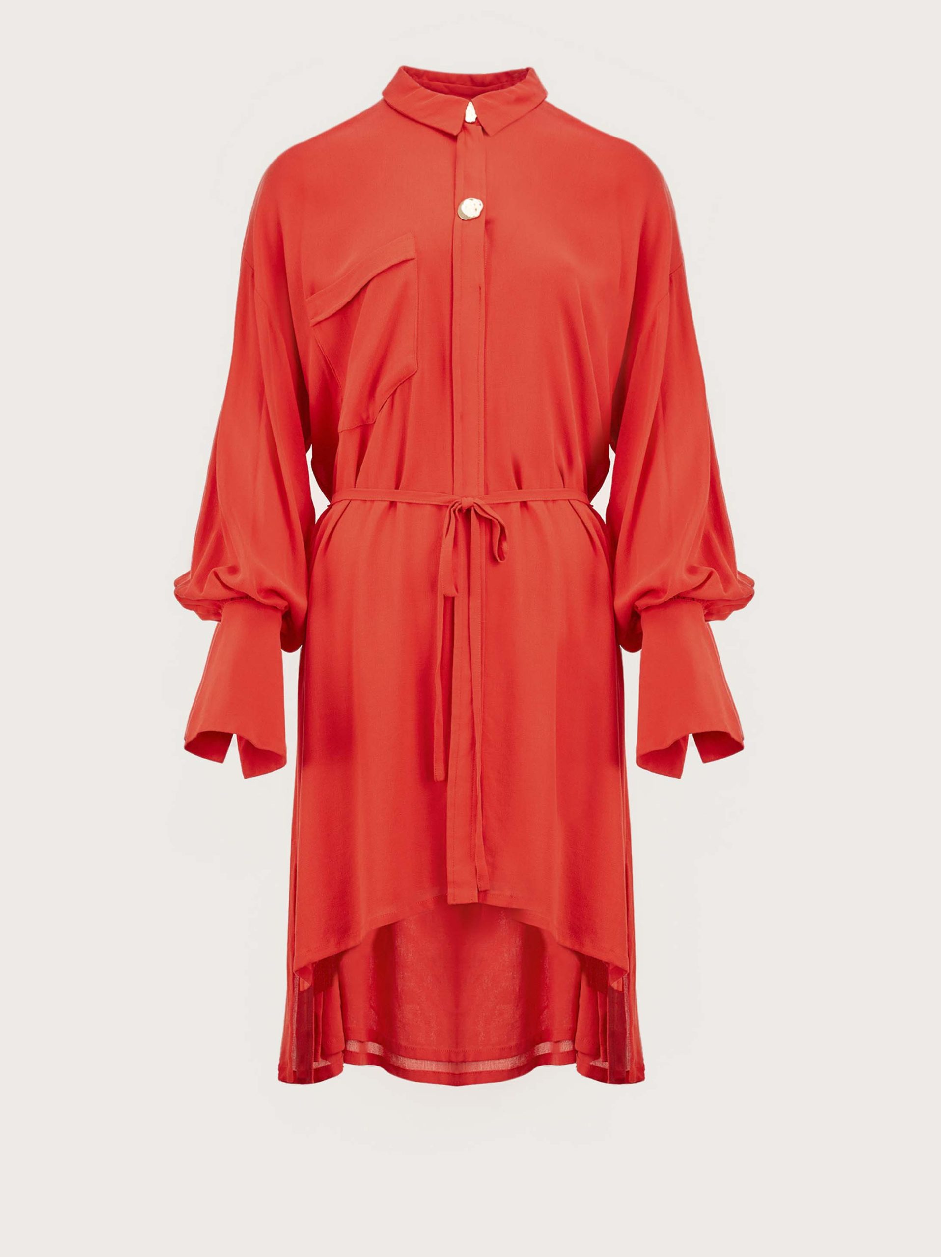 Đầm sơ mi tay dài thắt nơ eo