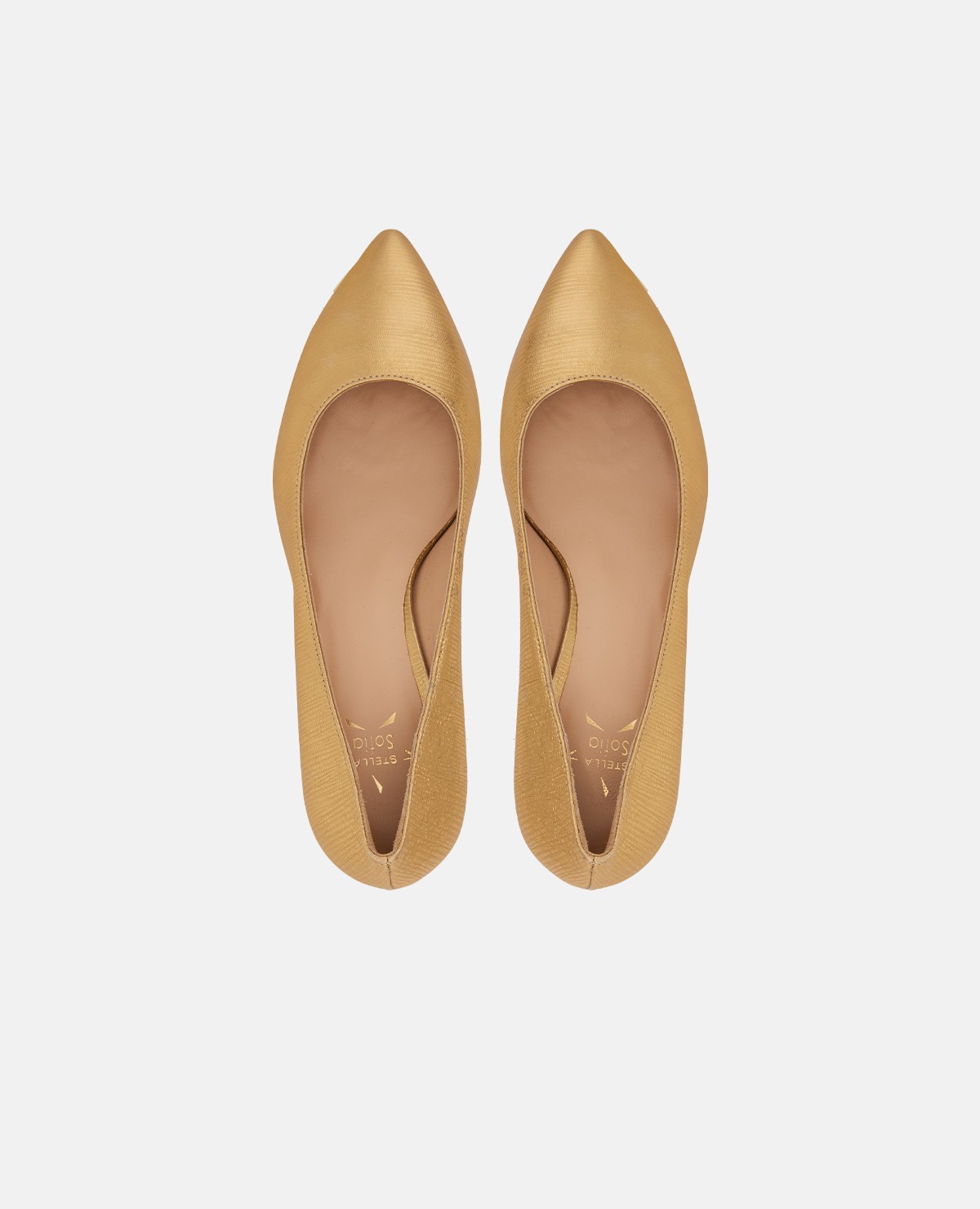 Thương hiệu: Sofia StellaMã sản phẩm: PA500N-GOLD – ID: 1084994Xuất xứ thương hiệu: ÝThiết kế mũi nhọn hiện đạiThân giày ánh vàng gold sang trọngĐế trong in logo tinh tếGót trụ vững vàng