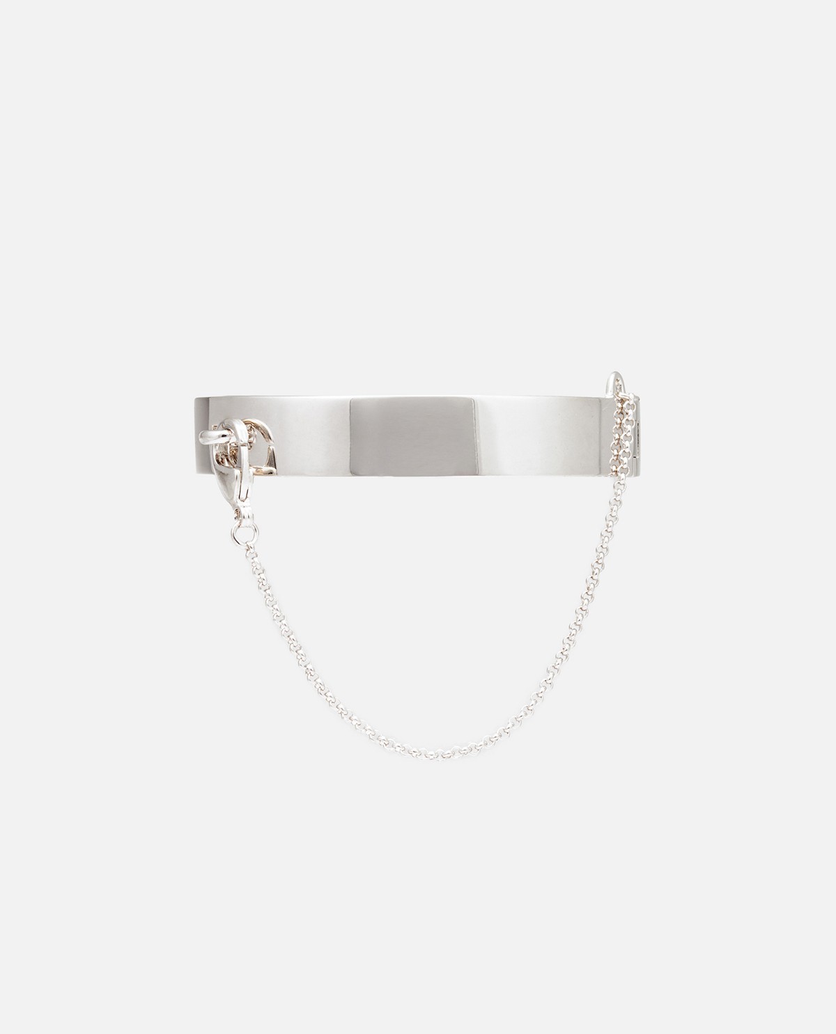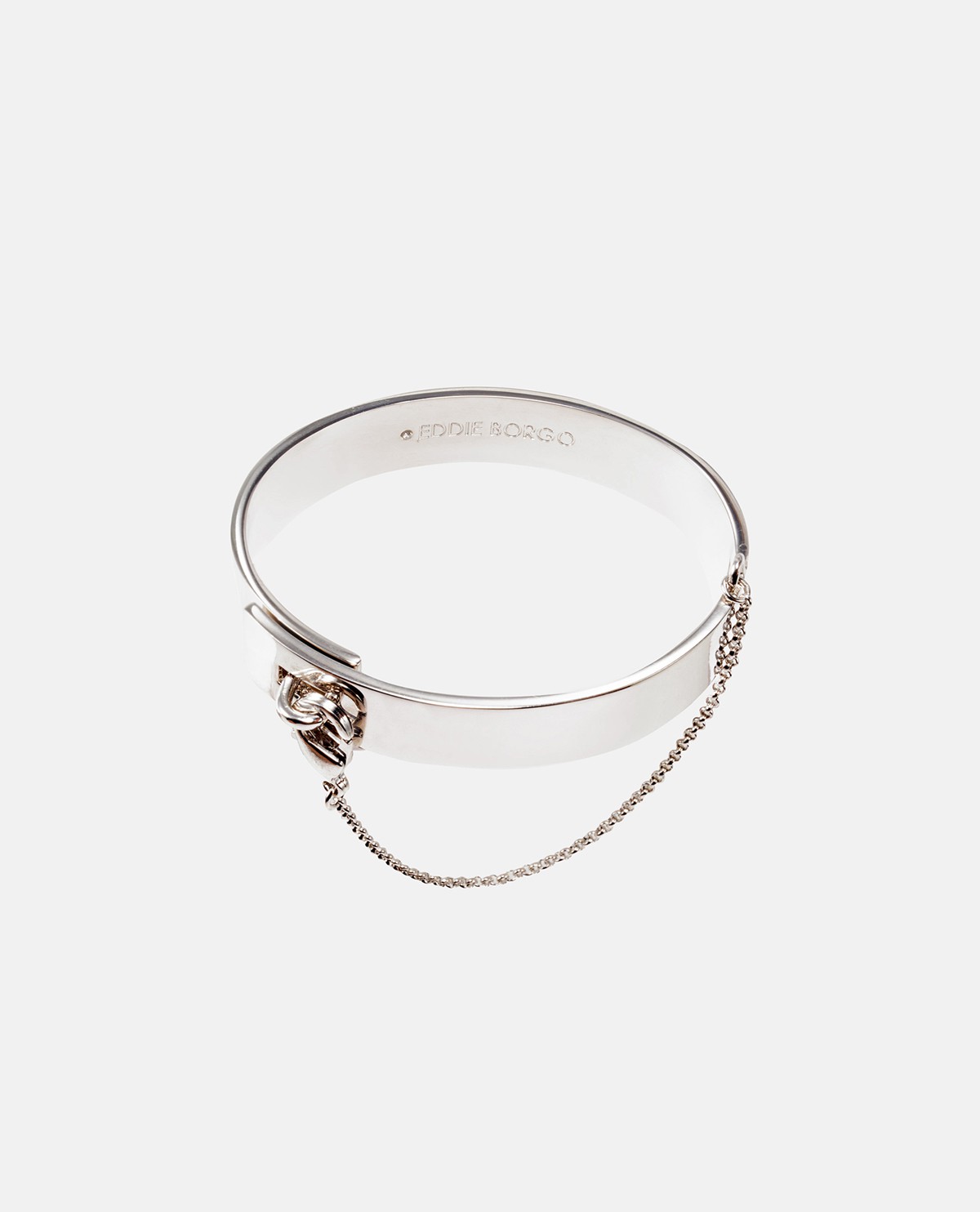 Thương hiệu: Eddie BorgoMã sản phẩm: BR1601 – ID: 1045797Xuất xứ thương hiệu: MỹMàu sắc: BạcVòng tay bản vừa phom cứngPhối chuỗi xích mảnh thời trang